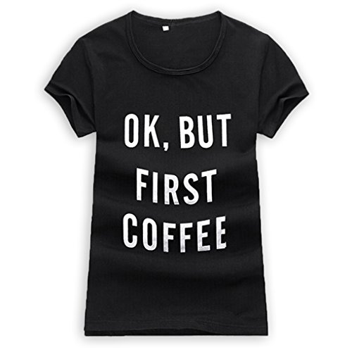 M-Egal Women Short Sleeve T shirt Ok But First Coffee Printed Letters Couple Casual Tee Shirts black M